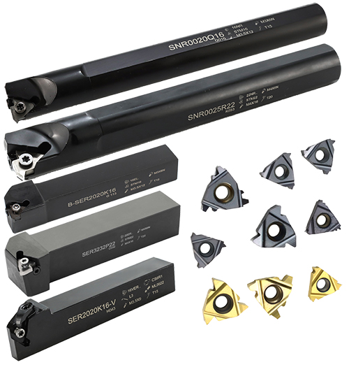 Our extensive assortment of thread turning tools covers a wide range of thread profiles and pitches , including tooth profiles of ER/EL insert with angles of 55˚/60˚, as well as ISO, UN, Whitworth,BSPT, NPT,NPTF, API, Round DIN 405, Trapez, ACME and Stub Acme.ccc